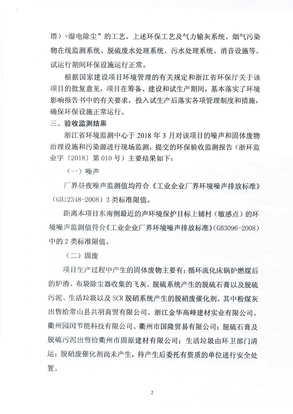 衢州东港热电有限公司二期扩建项目噪声、固废验收检测结果公示